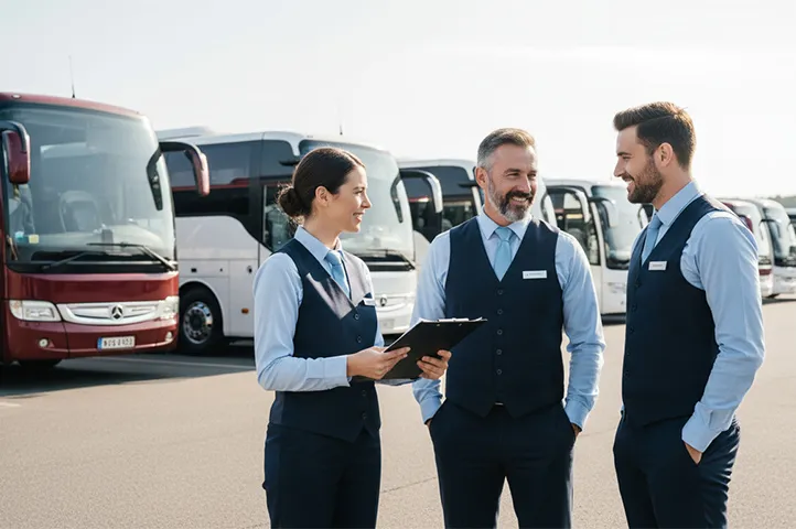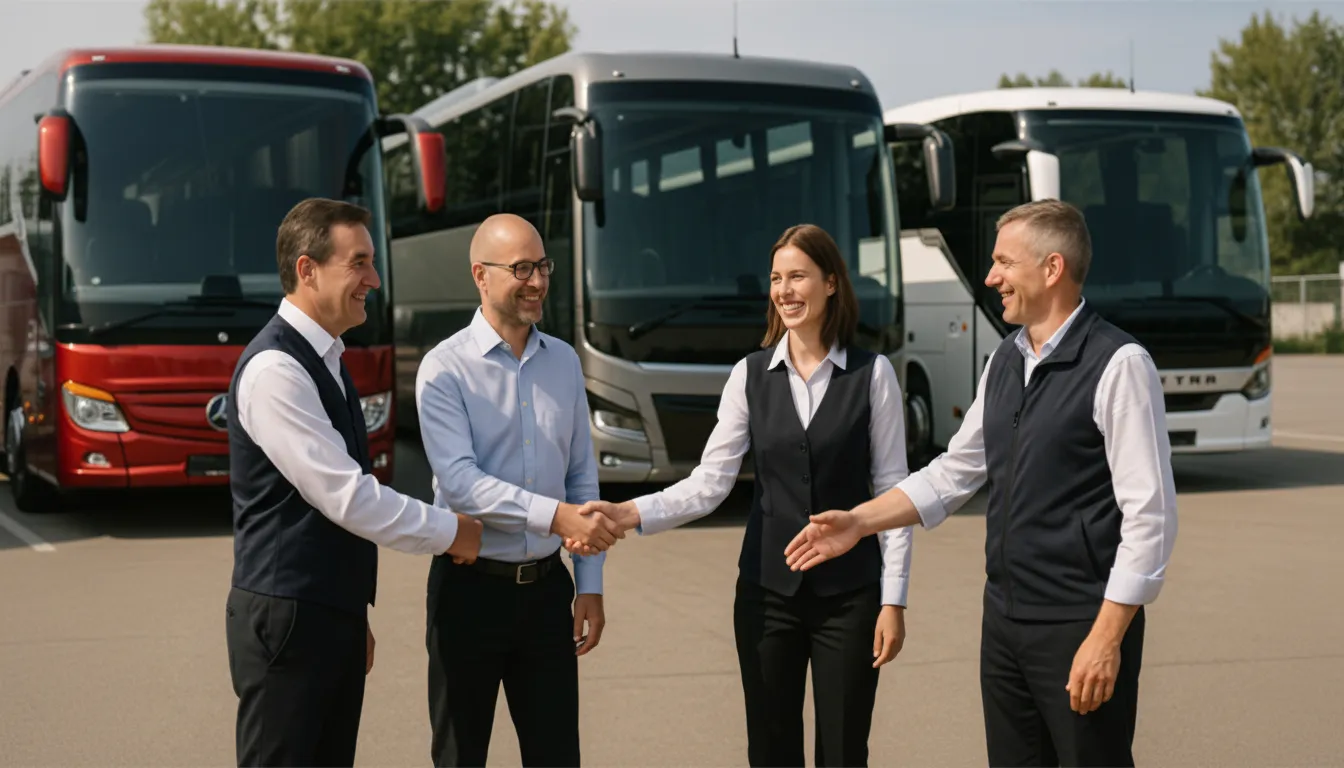 Wir besitzen keine eigenen Fahrzeuge, sondern arbeiten mit geprüften Partnerbetrieben zusammen, um für jede Anfrage den passenden Bus mit Fahrer zu finden.