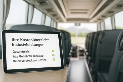 Statt sich durch endlose Angebote zu klicken, erhalten Sie mit unserer Busvermietung direkt individuelle Vorschläge von geprüften Busunternehmen. Weil wir nur mit erfahrenen Partnern zusammenarbeiten, können Sie sich auf moderne Fahrzeuge, geschulte Fahrerinnen und Fahrer sowie faire Konditionen verlassen. Transparenz ist für uns selbstverständlich, so wissen Sie von Anfang an, woran Sie sind - ohne versteckte Kosten. So verläuft Ihre Gruppenfahrt von der Planung bis zur Rückkehr reibungslos. Wir nehmen Ihnen die Organisation ab, damit Sie sich auf das Wesentliche konzentrieren können: Ihre Reise.
